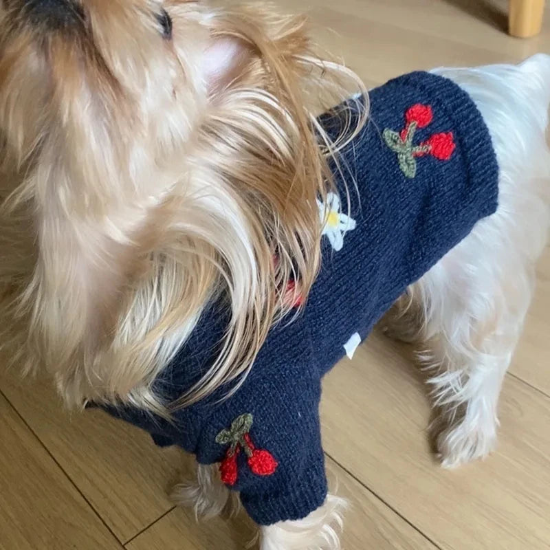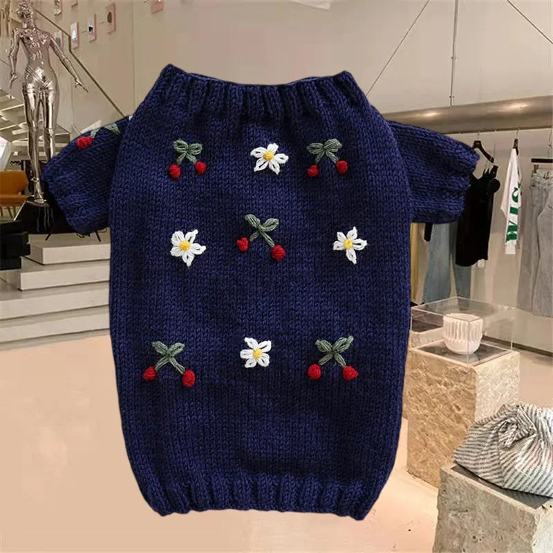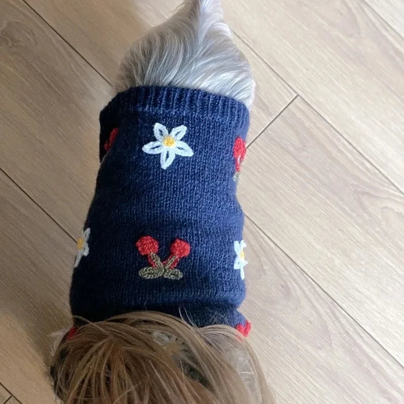 Embroidered Tulips Dog Clothes – Knit Sweater Pullover